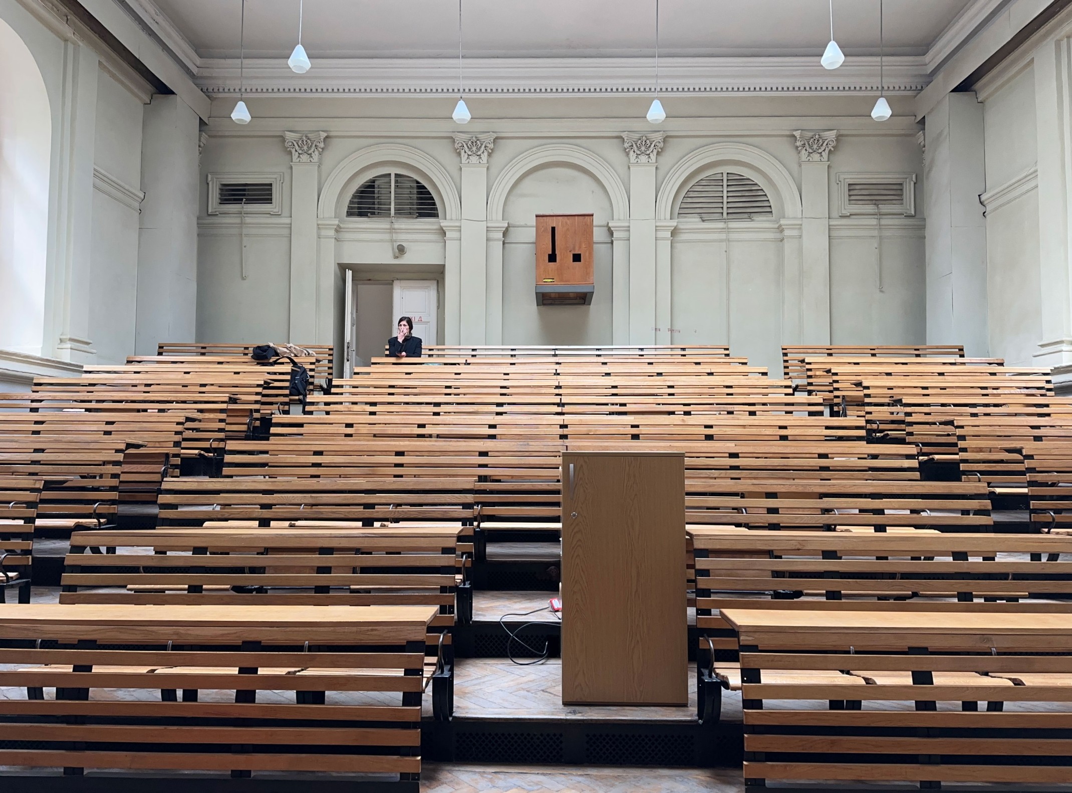 Consequently, the umbrella of discursive public programs held parallel to The Stammering Circle borrows directly from Brecht to frame projects by artists, cultural producers, thinkers, philosophers, architects, musicians, and composers who have responded to the threads brought forth by The Stammering Circle. The Chalk Circle is manifested in various locations throughout Lviv and Kyiv, including Jam Factory Art Center, the Lviv Polytechnic National University, the National University of Kyiv-Mohyla Academy, Home of Sound (Dim Zvuku), Lviv Town Hall, and the Center for Urban History. Events take place throughout the opening week of the exhibition from June 20 – 27, and in August 2025.