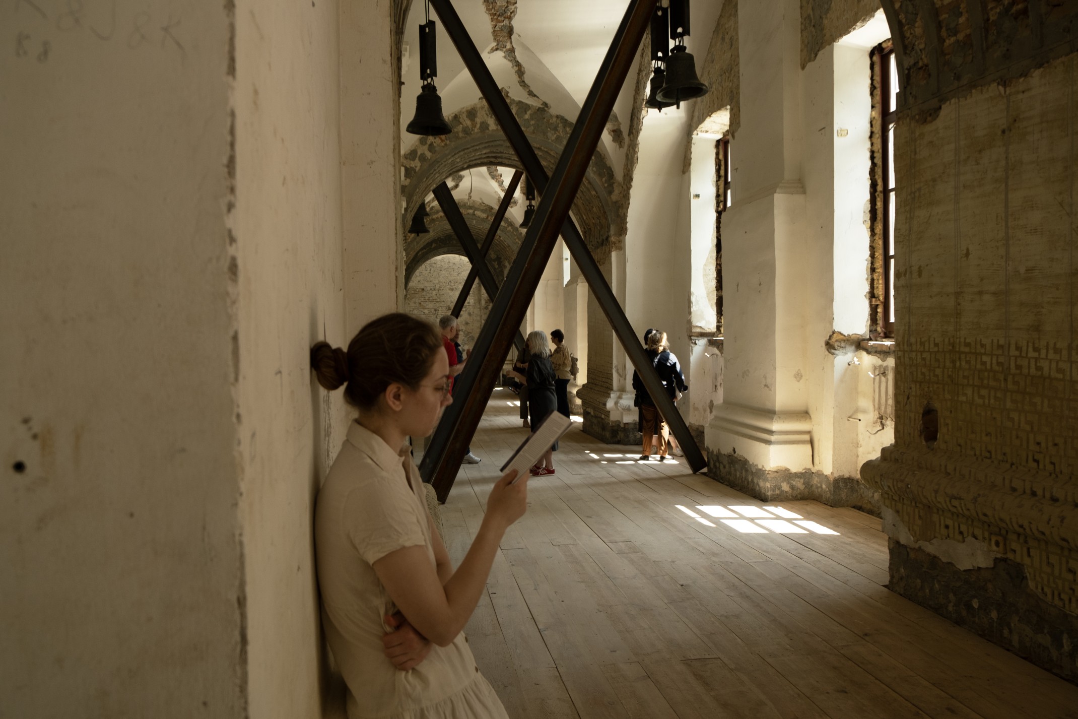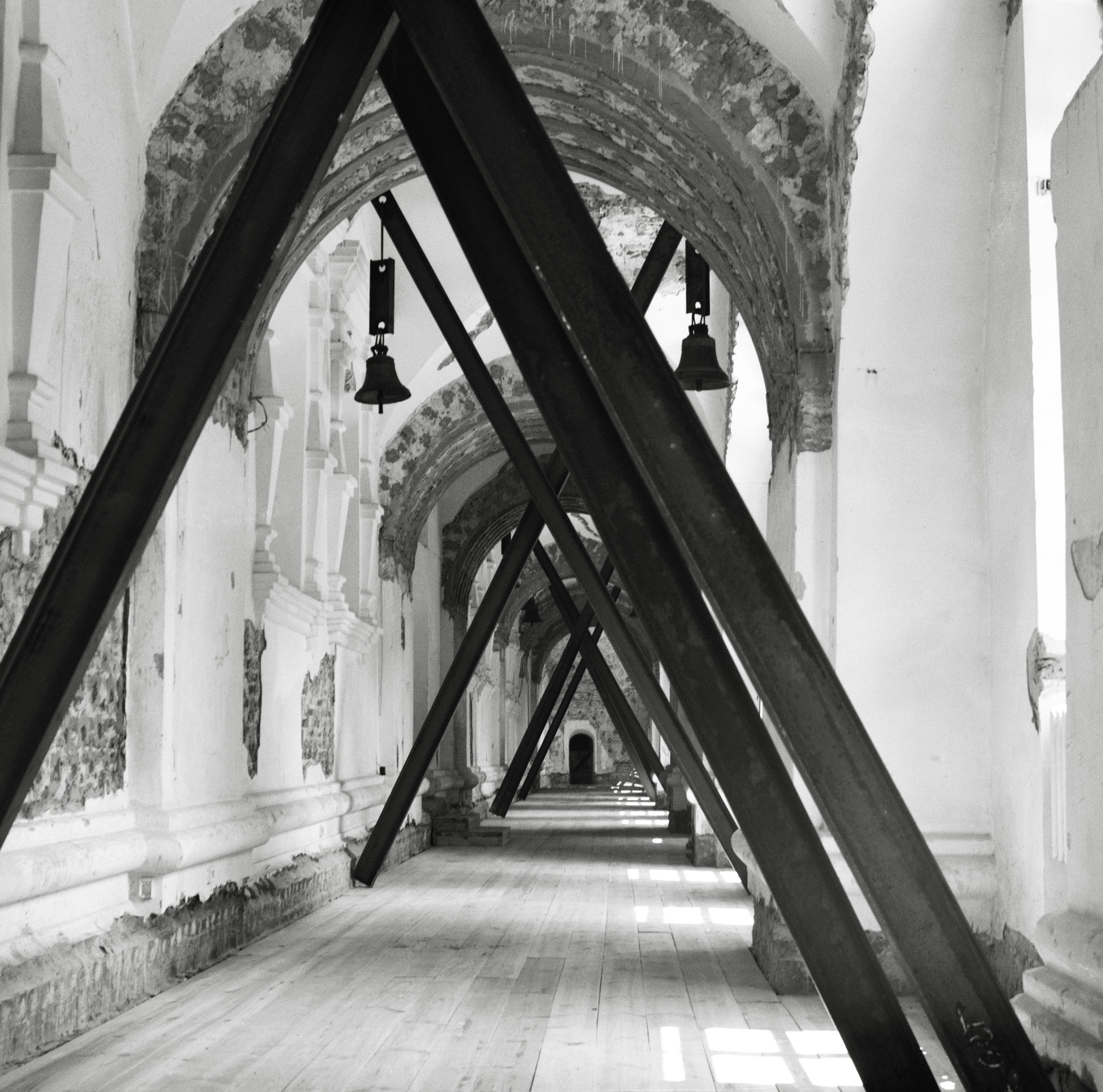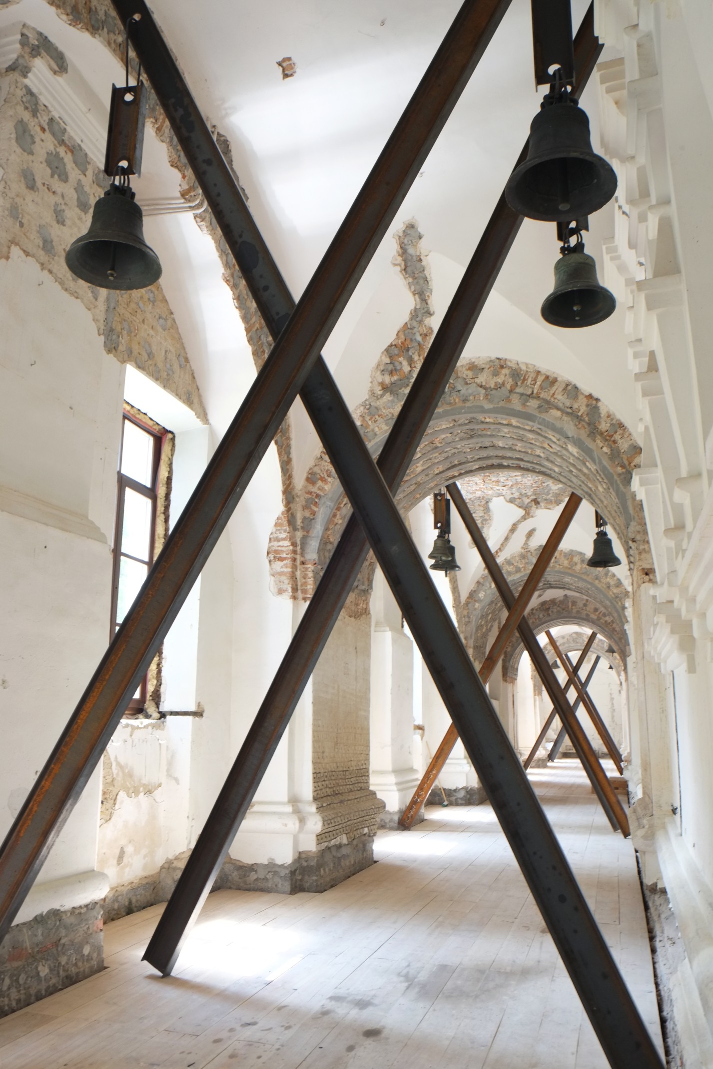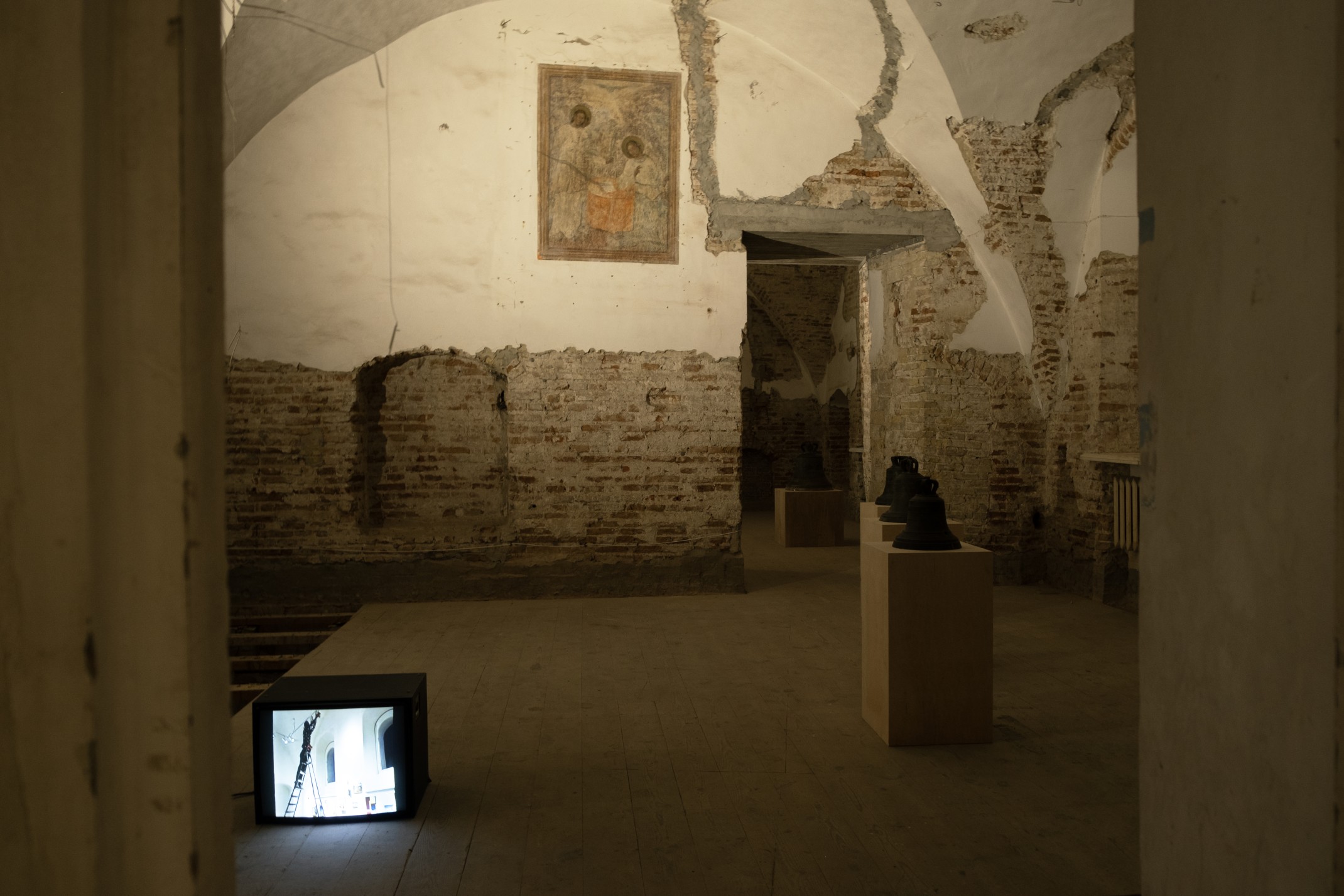 In 1997, a rare opportunity arose to work with the artist Jannis Kounellis in Kyiv within the apse of what was, at that time, the Soros Center for Contemporary Art, housed in a renovated baroque-era building that had served as the original location of Kyiv-Mohyla Academy. Kounellis’s proposal was simple yet expansive—an intervention comprising steel I-beams mounted along the length of the nave from which would hang a series of church bells. Kounellis’s only conditions for the bells were that they be historic in origin and made in Ukraine. The artist’s plan corresponded with his role as a central figure of the Arte Povera movement, which possessed, according to Germano Celant, “a new attitude for taking repossession of a ‘real’ dominion over our existence [leading] the artist towards continual forays outside of the places assigned to him.”