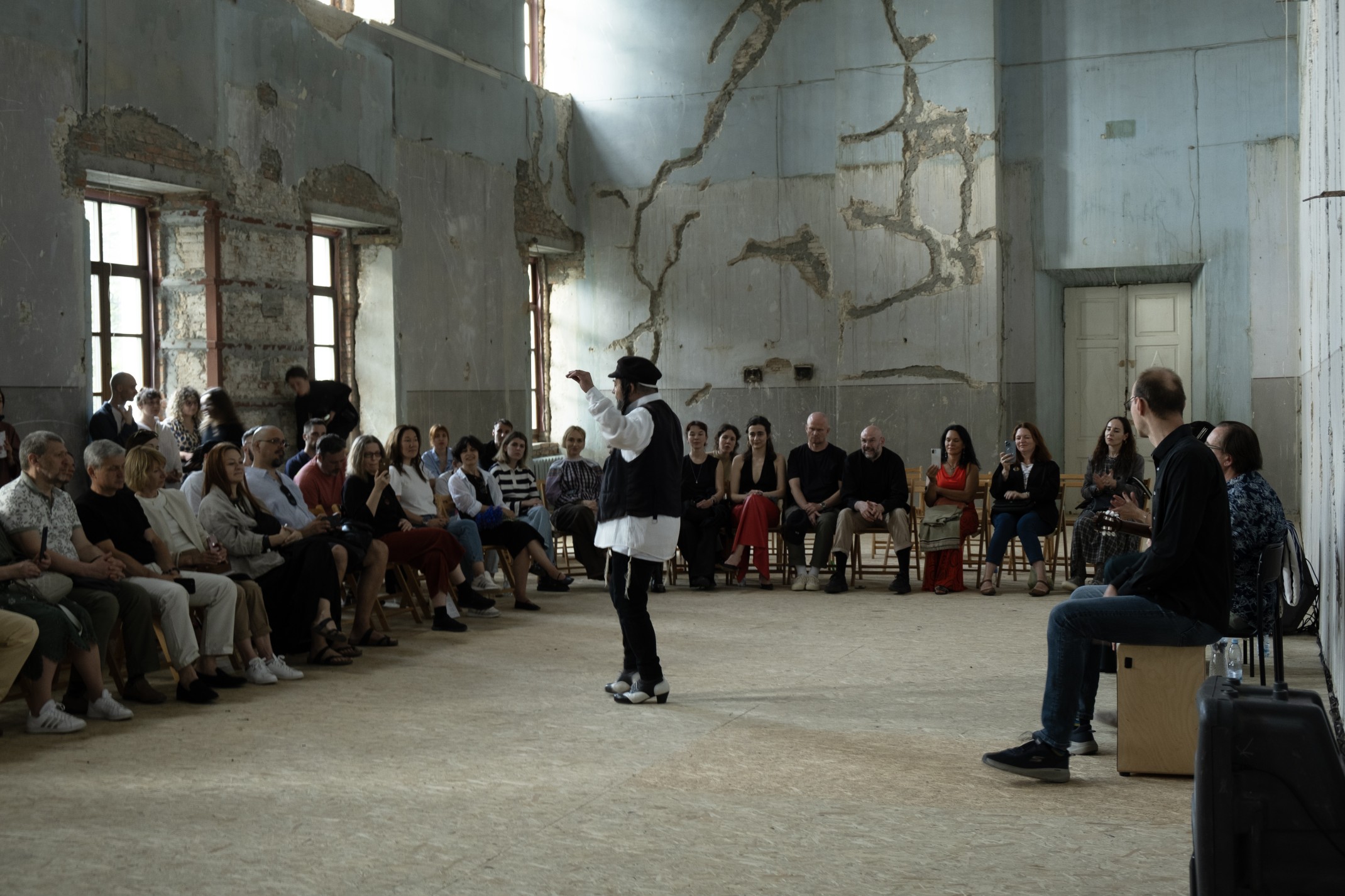 Перфоманс-відкриття у виконанні Ісаака де Худеа та Ольги Островерх, у супроводі Павла Косенка (гітара) та Олексія Хохуна (кахон) — це колективна практика канте де фієста — тобто святкової, «легкої» гілки фламенко, до якої належать танцювальні форми на кшталт булеріас, алегріас та тангос. Вибір форми тут не естетичний, а літургійний. Згідно з вченням рабі Нахмана з Брацлава середина червня — це час, коли перед хасидами постає «обов’язок радості», коли її слід плекати та примножувати.